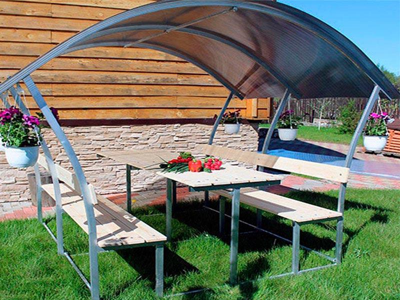Каркас беседки изготовлен из оцинкованной трубы прямоугольного сечения 40х20мм наивысшего качества, которая не проржавеет и не окислится со временем, каркас собирается с помощью болтов и гаек.